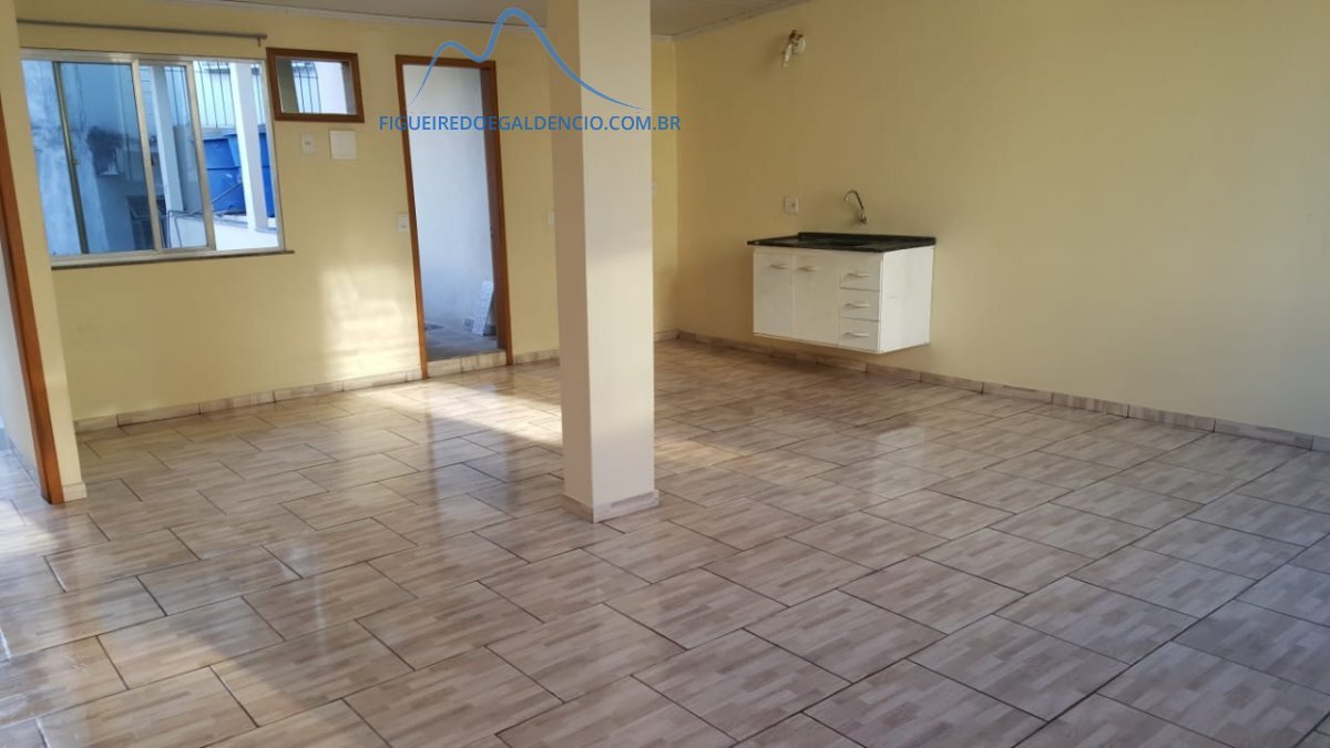Sala, 2 quartos, banheiro social, quintal com área de serviço,